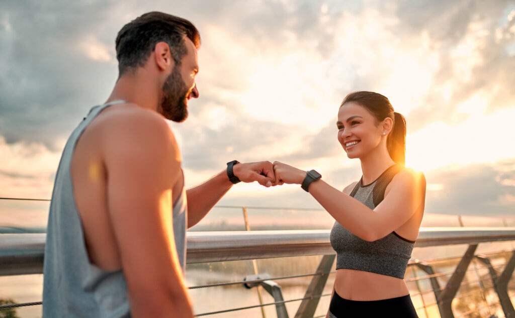 Couple doing sport together on the street.